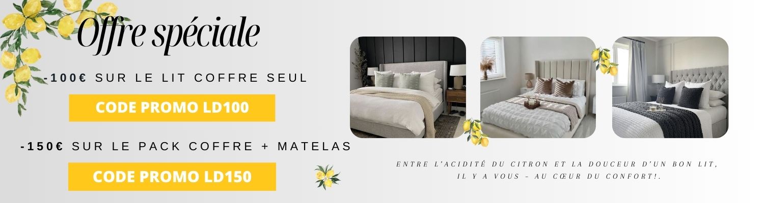 Fonctionnels et intemporels, nos lits à coffre sont idéaux si vous avez besoin de rangements supplémentaires. Vous pourrez y stocker vos couettes et oreillers, en toute discrétion. Avec ses diverses tailles de couchages, vous trouverez à coup sûr le lit à coffre qui vous conviendra et vous vous offrirez des nuits des plus agréables. Fabriqués avec des éléments robustes et durables, nos lits à coffre sont garantis un an.